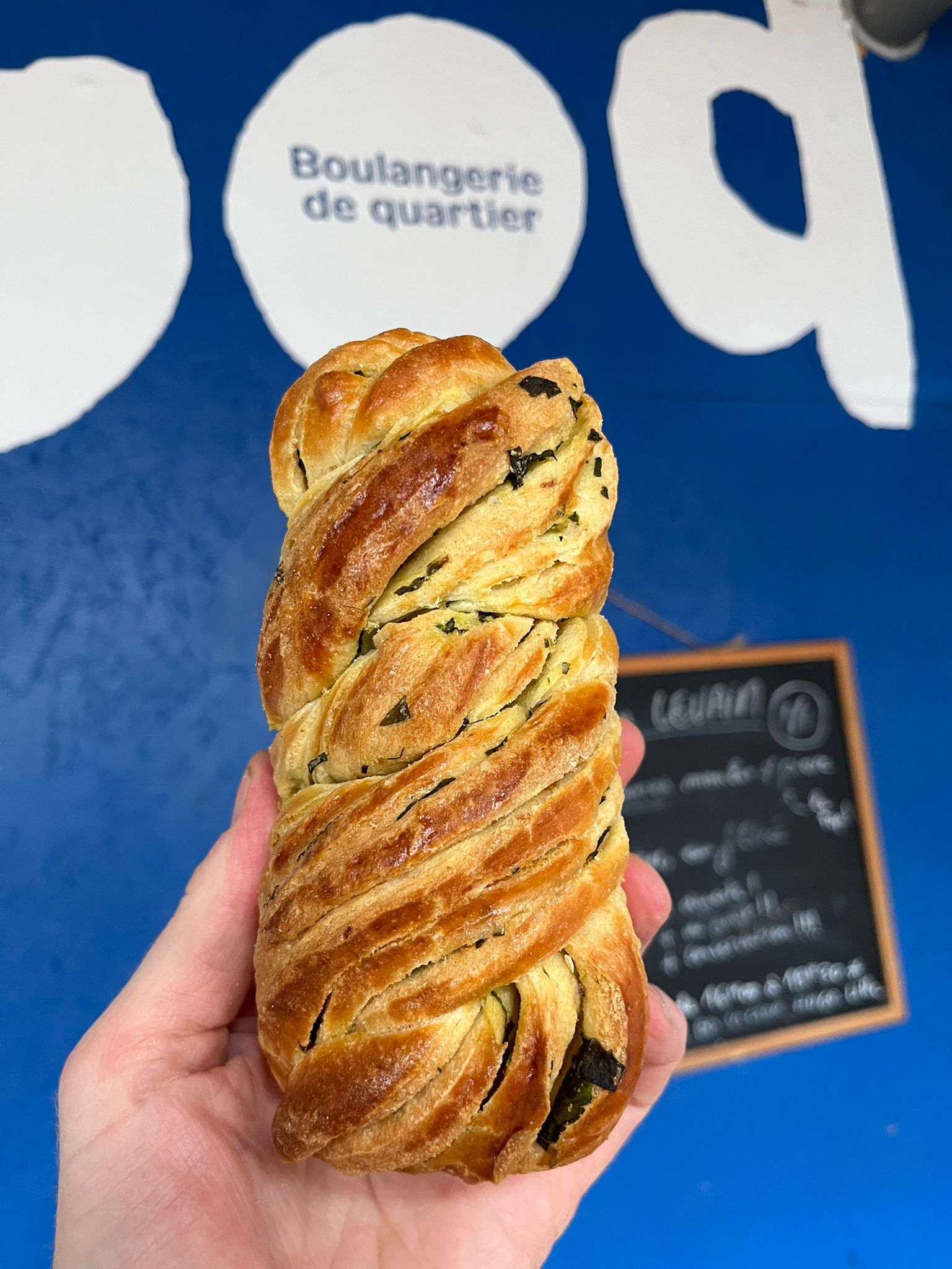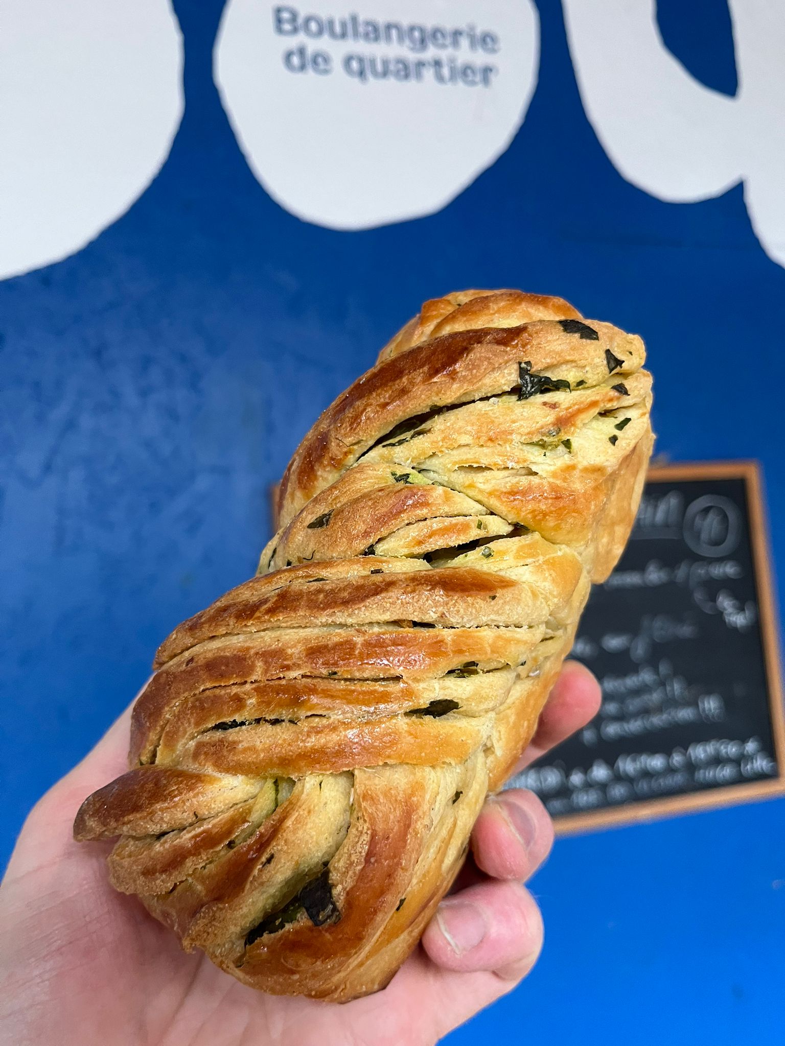 LE MIAM-MIAM SUCRÉ-SALÉ : la brioche roulée et tressée avec un beurre à l’ail des ours (merci à notre généreuse voisine Chant’ail) et sel fumé au bois de hêtre. A déguster seul ou avec un fromage (ou tartinable) crémeux !